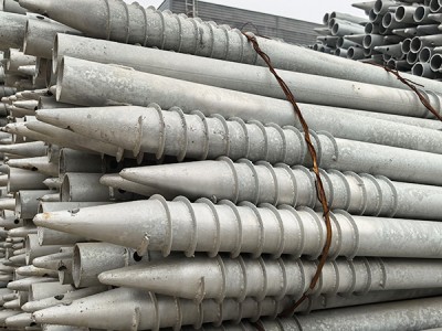 “传动轴与叶片的连接设计” 是螺旋传动稳定的另一关键,需确定动力传递速率与结构强度。传动轴通常采用实心圆钢或厚壁钢管(直径 50-100mm),与叶片的连接需采用 “满焊 + 增加筋” 工艺:叶片内圈与传动轴外壁满焊,焊缝高度不低于叶片厚度(通常 6-12mm),同时在叶片两侧焊接三角形增加筋,防止叶片在旋转切削土壤时因受力不均出现变形或脱落。传动轴前端需设计标准化连接接口(如法兰、花键),与驱动设备快对接,接口处需设置定位销或键槽,动力传递无打滑,避免因接口松动导致传动速率下降或地桩偏斜。此外,传动轴需进行防腐处理(如热镀锌、涂刷防腐涂料),在地下水位较不错或腐蚀性土壤中,防止传动轴锈蚀影响动力传递。